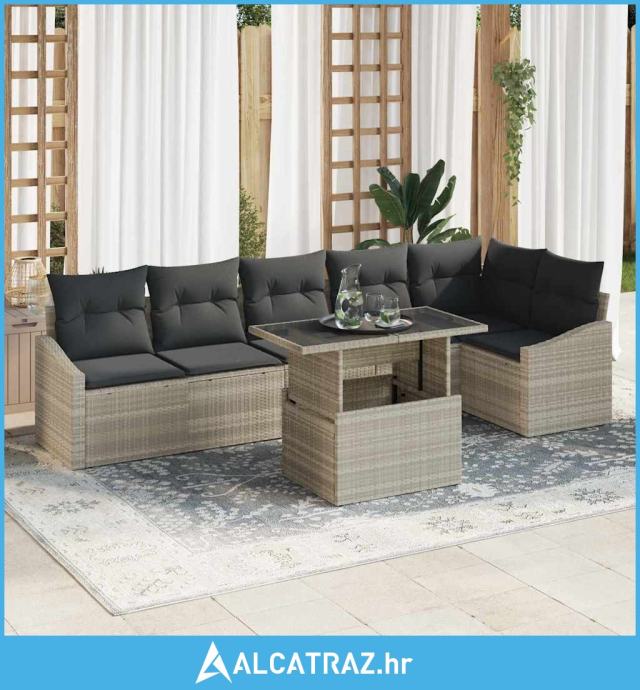 7-dijelni set vrtnih sofa s jastučićima svijetlosivi poli ratan - NOVO