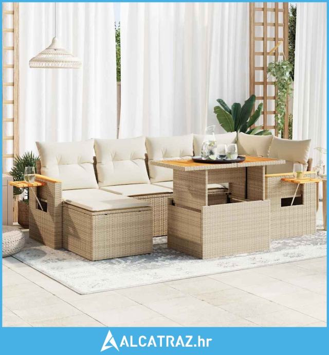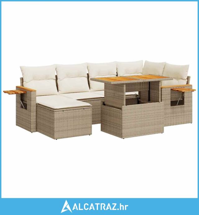 7-dijelni set vrtnih sofa s jastucima bež od poliratana bagrem - NOVO