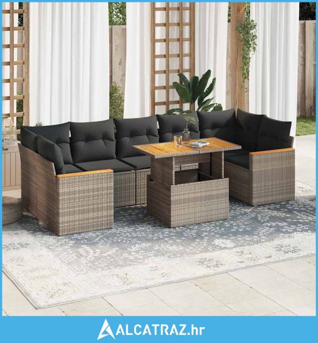 7-dijelni set vrtnih sofa poliratan i bagrem s jastucima sivi - NOVO