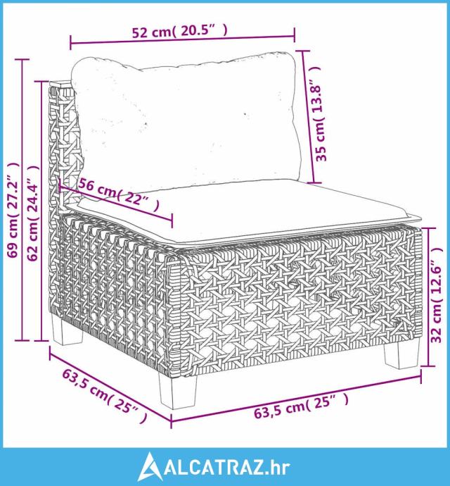 - Dimenzije jastuka za sjedenje (sredina/tabure): 63,5 x 56,5 x 3 cm (Š x D x T)