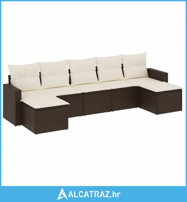 7-dijelni set vrtnih sofa od poliratana s jastucima smeđi - NOVO