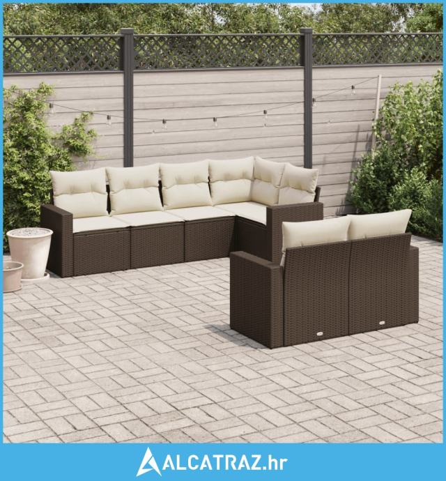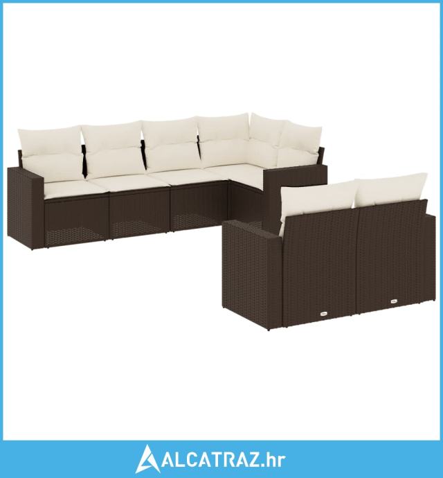 7-dijelni set vrtnih sofa od poliratana s jastucima smeđi - NOVO