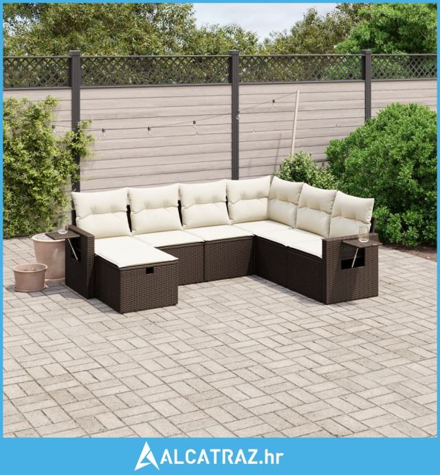 7-dijelni set vrtnih sofa od poliratana s jastucima smeđi - NOVO