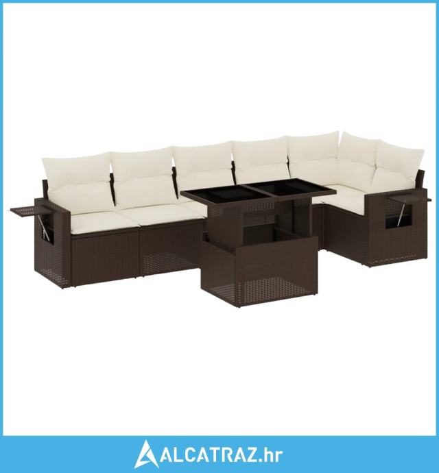 7-dijelni set vrtnih sofa od poliratana s jastucima smeđi - NOVO