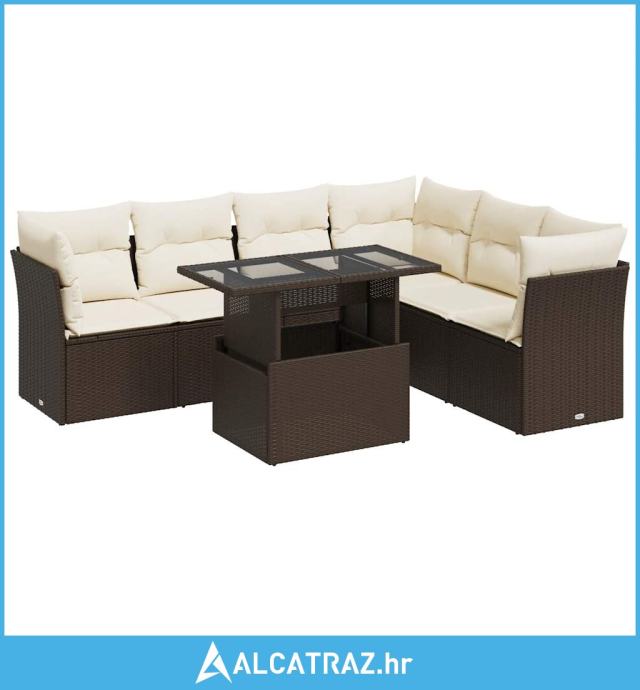 7-dijelni set vrtnih sofa od poliratana s jastucima smeđi - NOVO