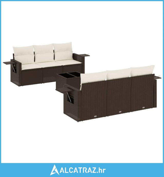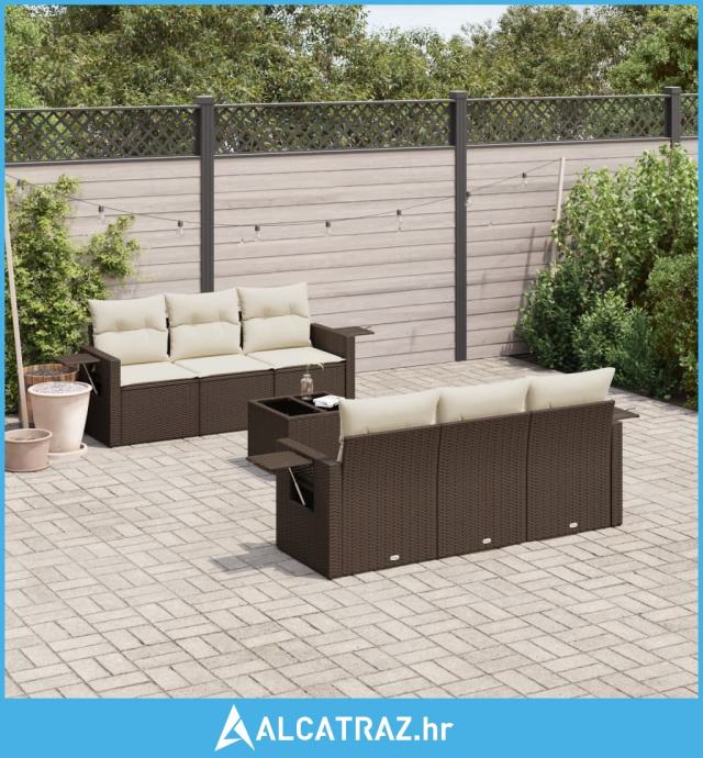 7-dijelni set vrtnih sofa od poliratana s jastucima smeđi - NOVO