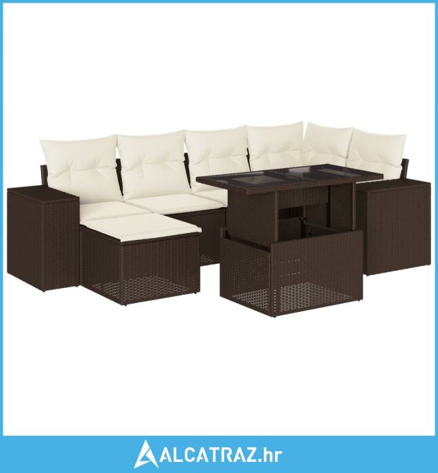 7-dijelni set vrtnih sofa od poliratana s jastucima smeđi - NOVO