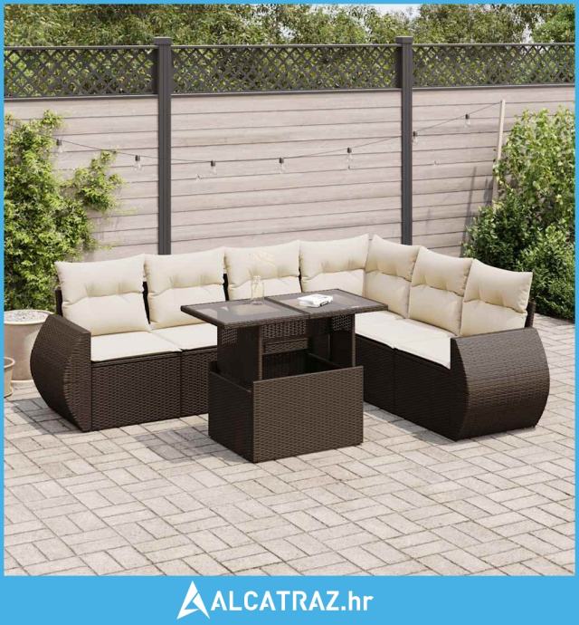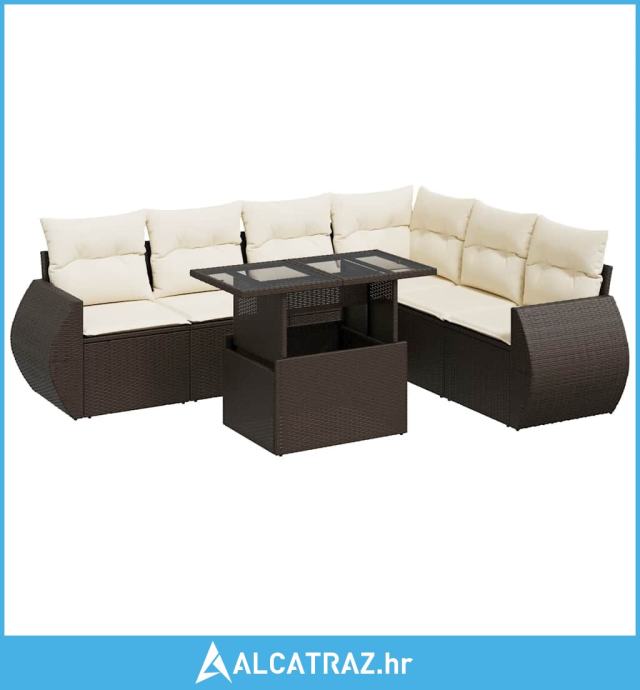 7-dijelni set vrtnih sofa od poliratana s jastucima smeđi - NOVO