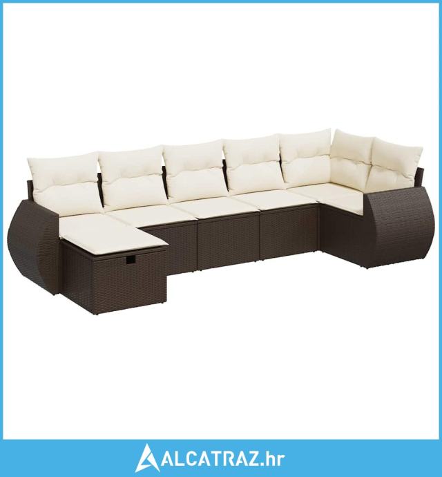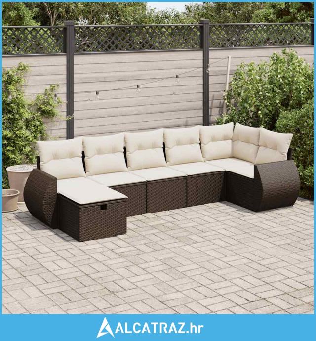 7-dijelni set vrtnih sofa od poliratana s jastucima smeđi - NOVO