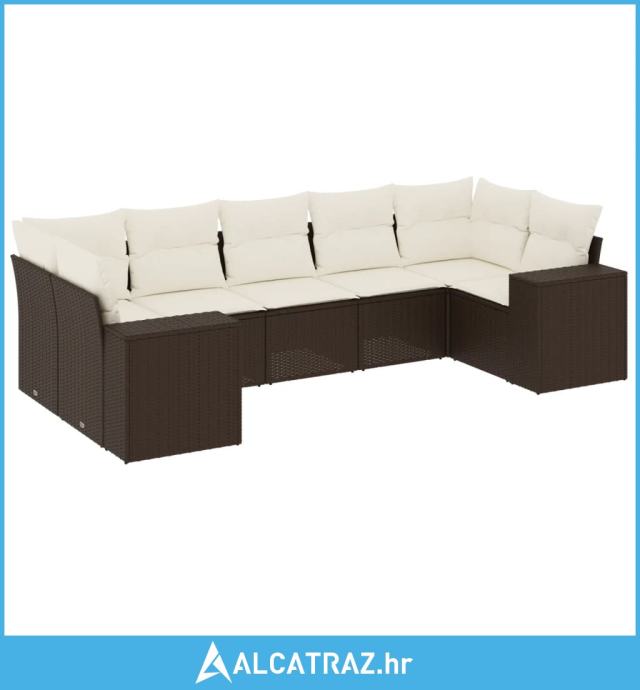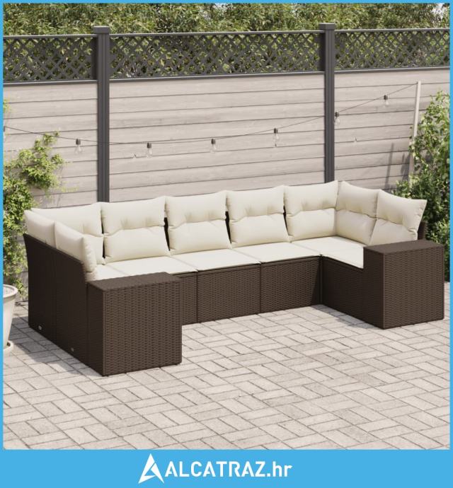 7-dijelni set vrtnih sofa od poliratana s jastucima smeđi - NOVO