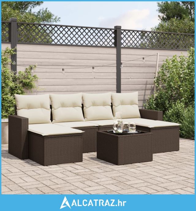 7-dijelni set vrtnih sofa od poliratana s jastucima smeđi - NOVO