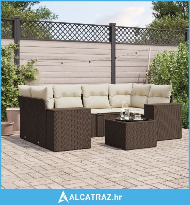 7-dijelni set vrtnih sofa od poliratana s jastucima smeđi - NOVO
