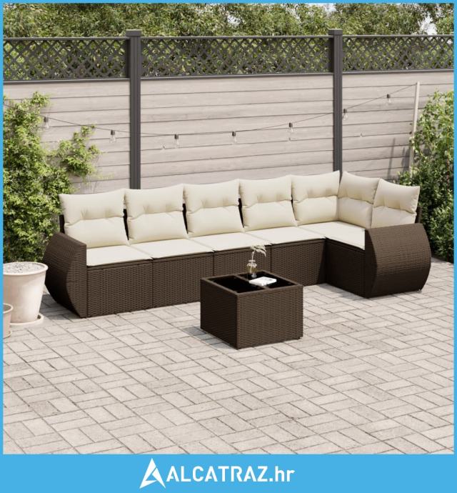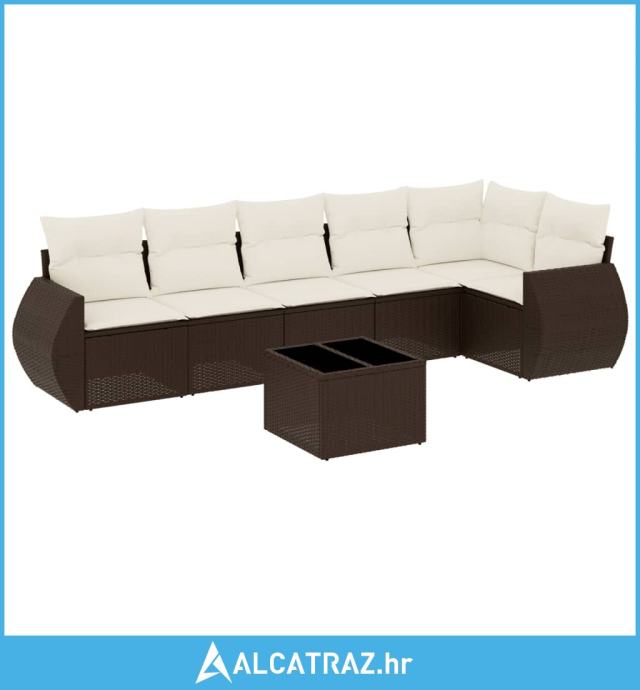 7-dijelni set vrtnih sofa od poliratana s jastucima smeđi - NOVO