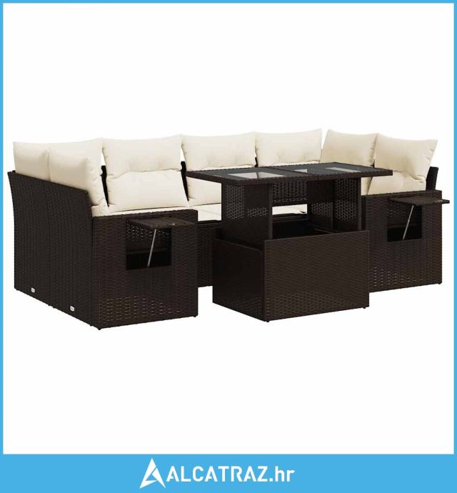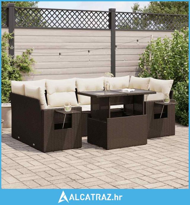 7-dijelni set vrtnih sofa od poliratana s jastucima smeđi - NOVO