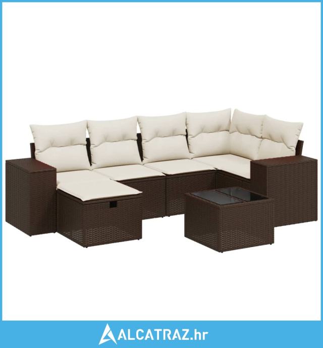 7-dijelni set vrtnih sofa od poliratana s jastucima smeđi - NOVO