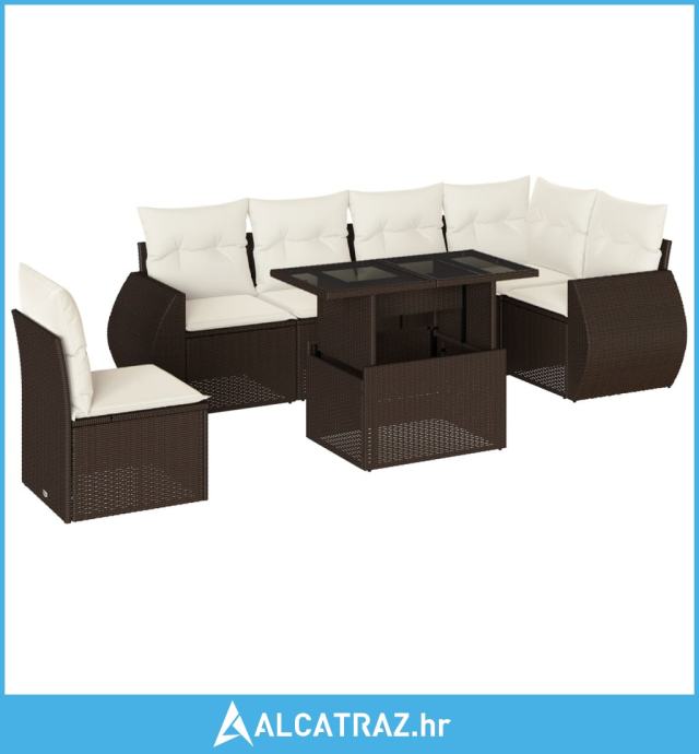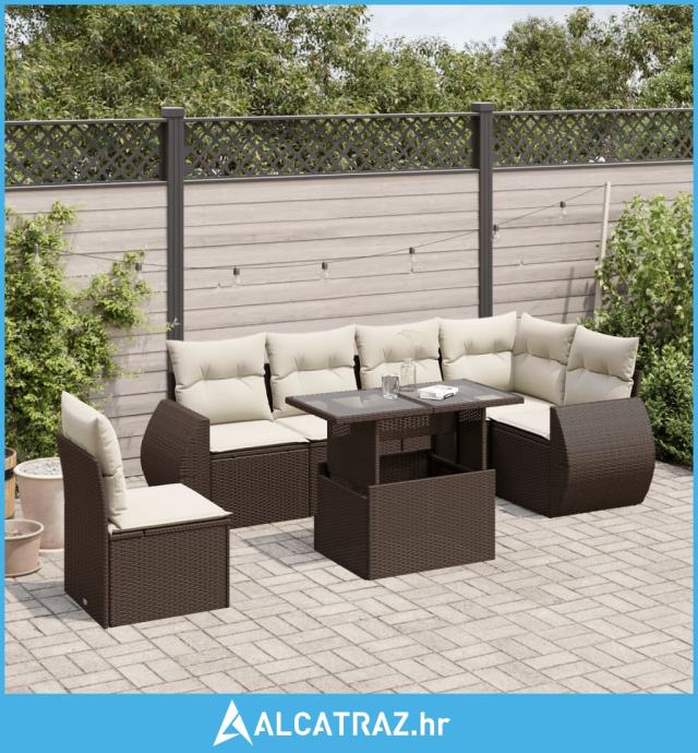 7-dijelni set vrtnih sofa od poliratana s jastucima smeđi - NOVO