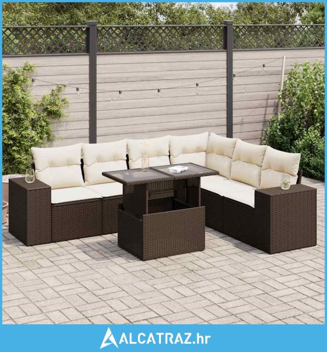 7-dijelni set vrtnih sofa od poliratana s jastucima smeđi - NOVO