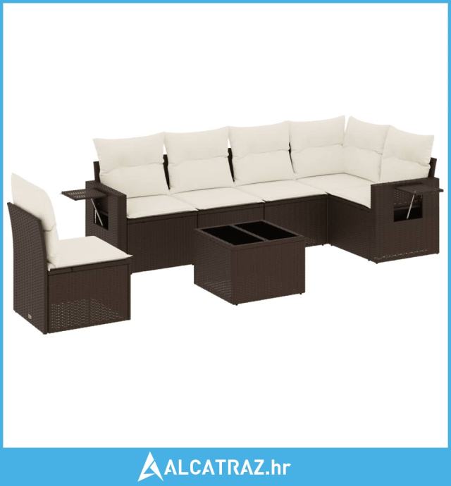 7-dijelni set vrtnih sofa od poliratana s jastucima smeđi - NOVO