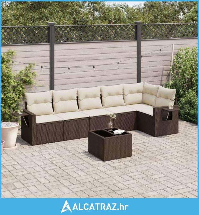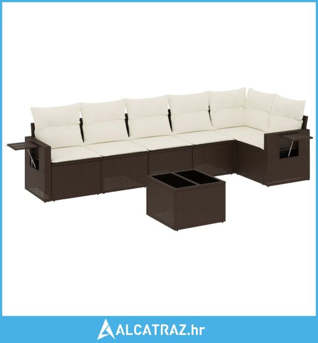7-dijelni set vrtnih sofa od poliratana s jastucima smeđi - NOVO