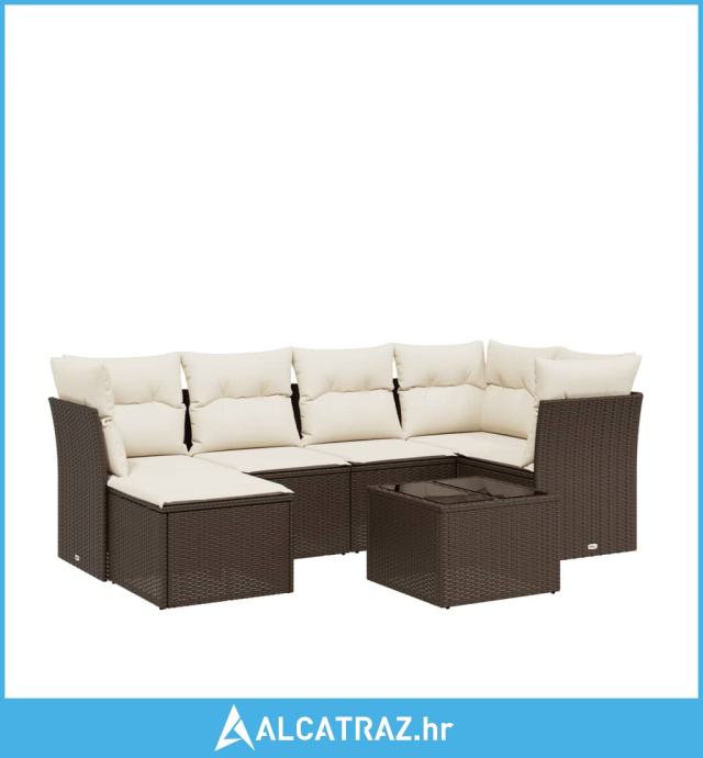 7-dijelni set vrtnih sofa od poliratana s jastucima smeđi - NOVO