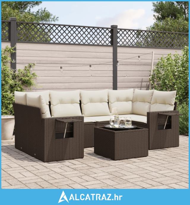 7-dijelni set vrtnih sofa od poliratana s jastucima smeđi - NOVO