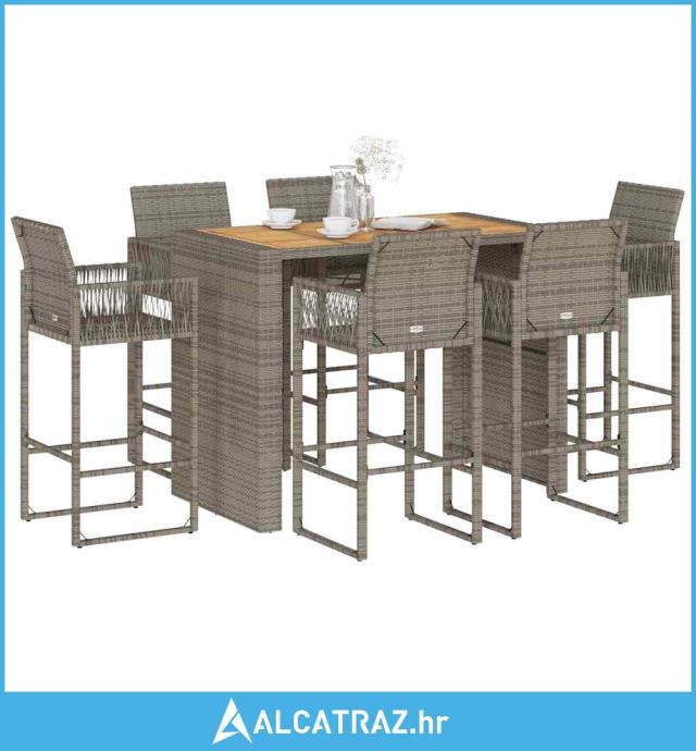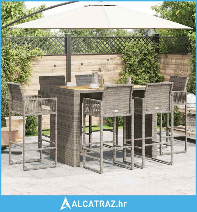 7-dijelni vrtni barski set bez jastucima sivi poliratana bagrem - NOVO