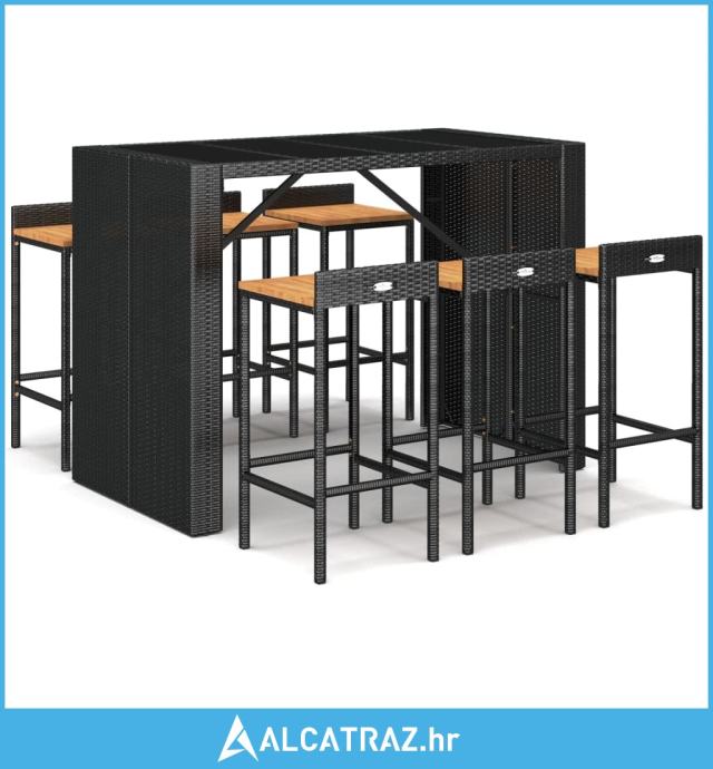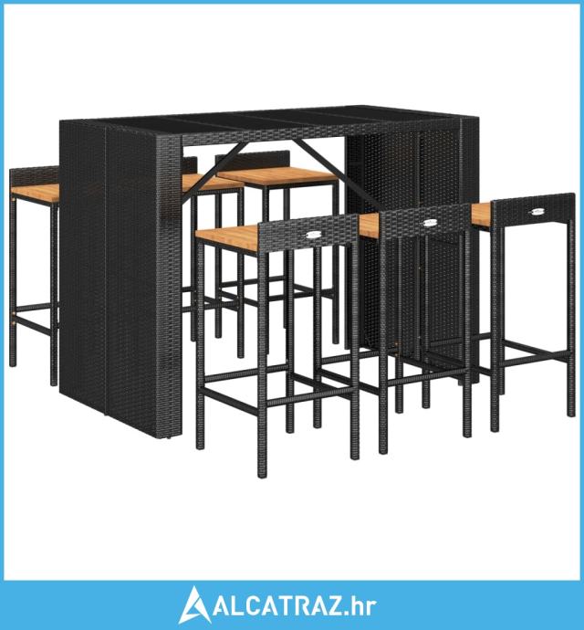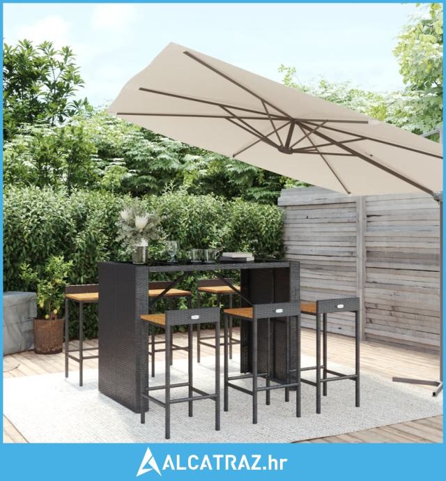 7-dijelni vrtni barski set crni od poliratana i drva bagrema - NOVO