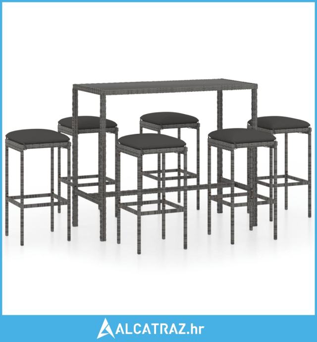 7-dijelni vrtni barski set od poliratana s jastucima sivi - NOVO