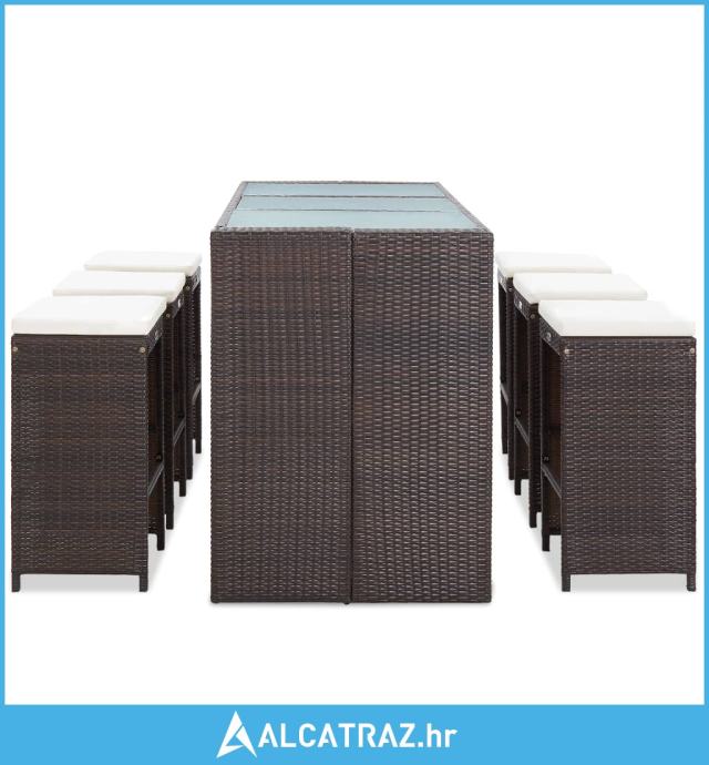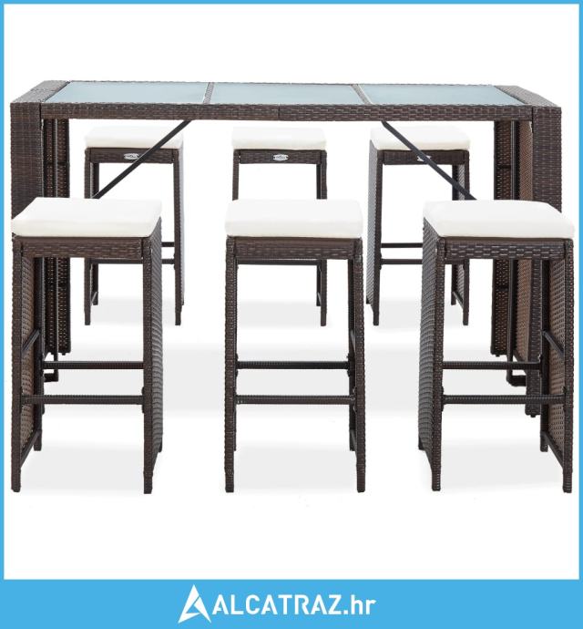 7-dijelni vrtni barski set od poliratana s jastucima smeđi - NOVO