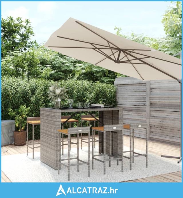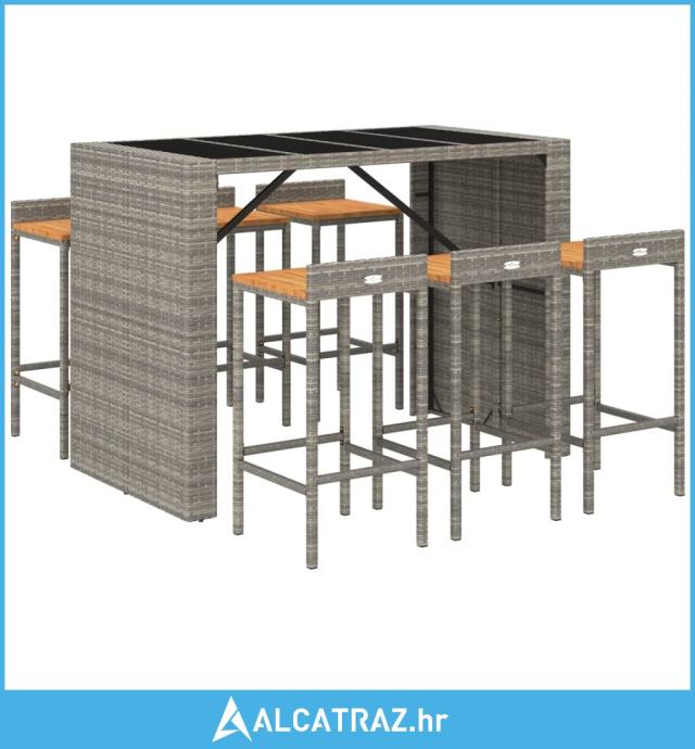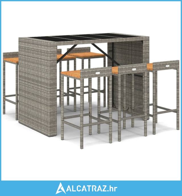 7-dijelni vrtni barski set sivi od poliratana i drva bagrema - NOVO