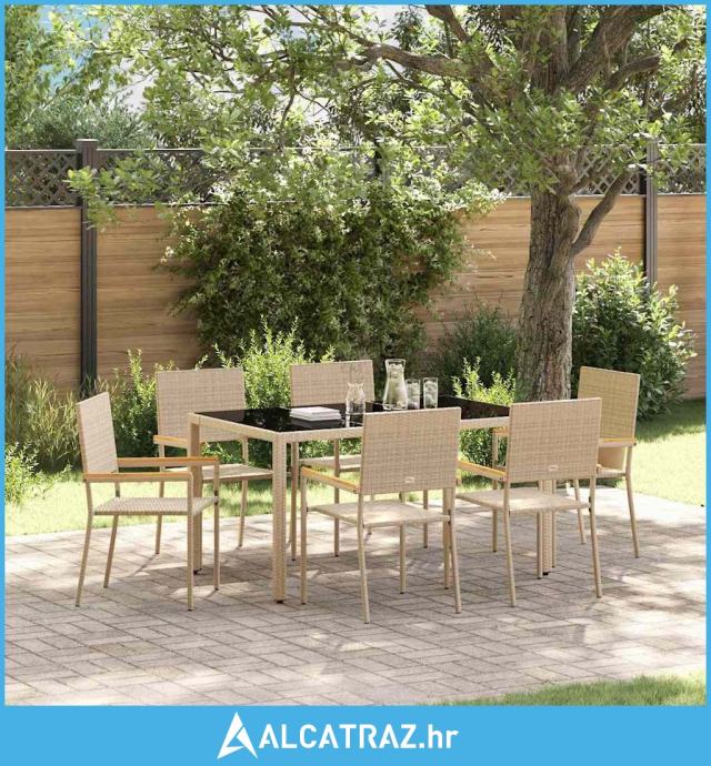 7-dijelni vrtni blagovački set bež poliratan, staklene vrtne stolice s