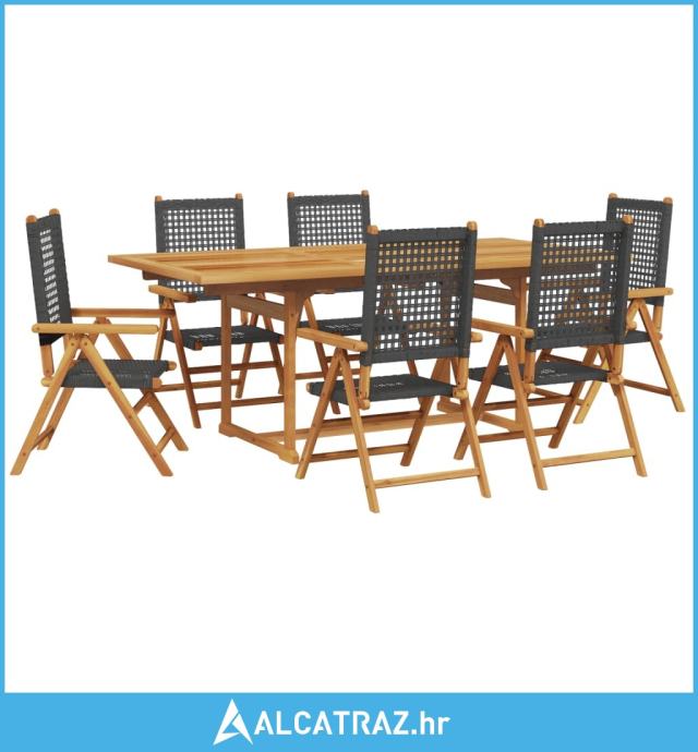 7-dijelni vrtni blagovaonski set crni poliratana i masivno drvo - NOVO