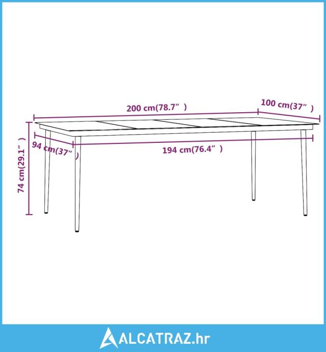 - Dimenzije stola: 200 x 100 x 74 cm (D x Š x V)