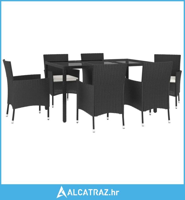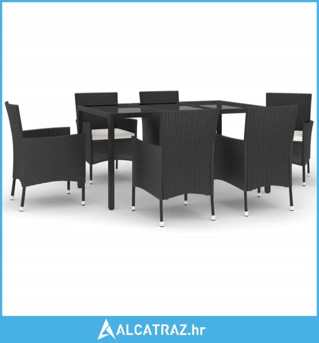 7-dijelni vrtni blagovaonski set s jastucima crni od poliratana - NOVO