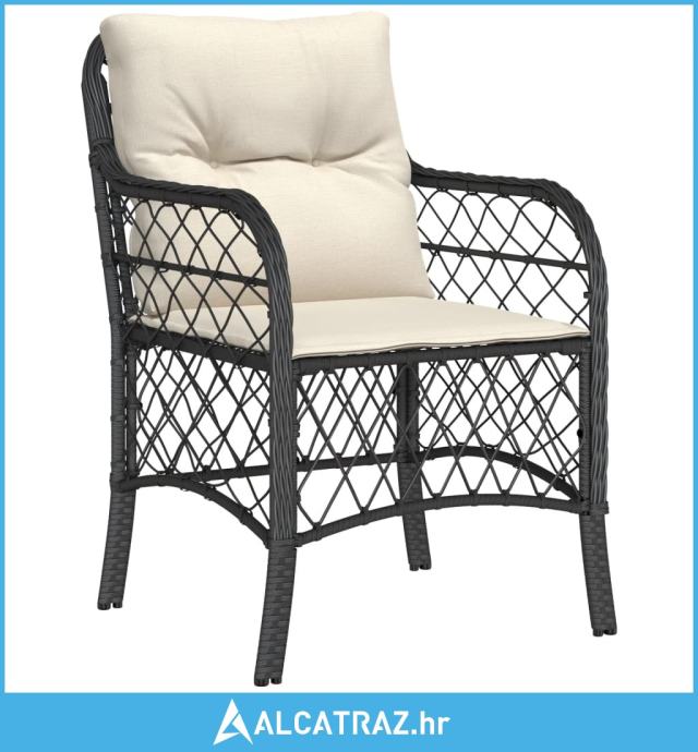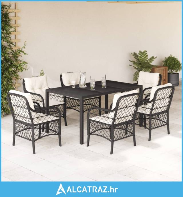 7-dijelni vrtni blagovaonski set s jastucima crni od poliratana - NOVO