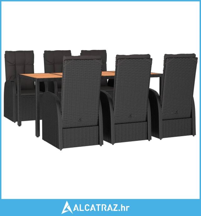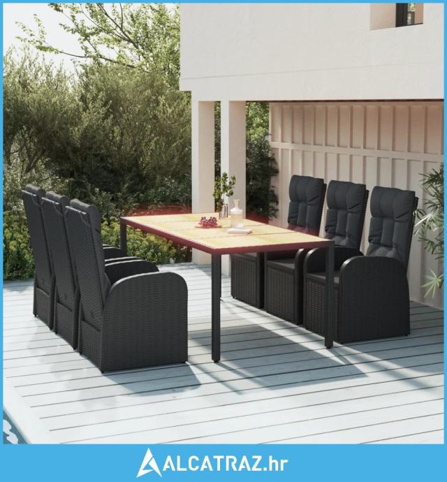 7-dijelni vrtni blagovaonski set s jastucima crni od poliratana - NOVO