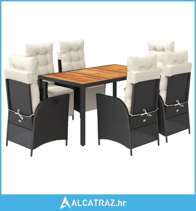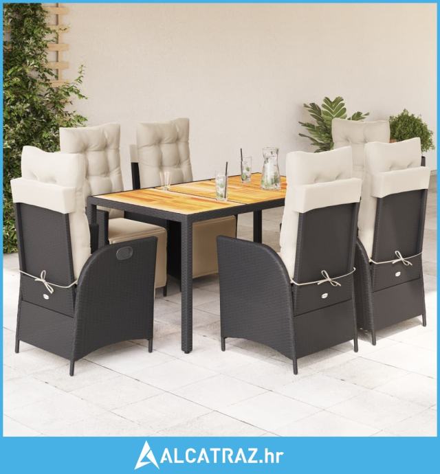 7-dijelni vrtni blagovaonski set s jastucima crni od poliratana - NOVO