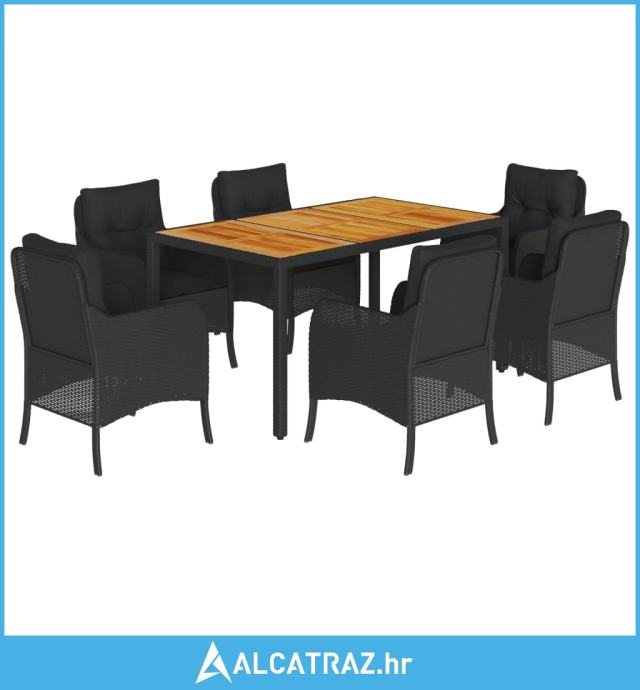 7-dijelni vrtni blagovaonski set s jastucima crni od poliratana - NOVO