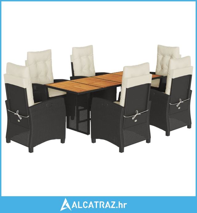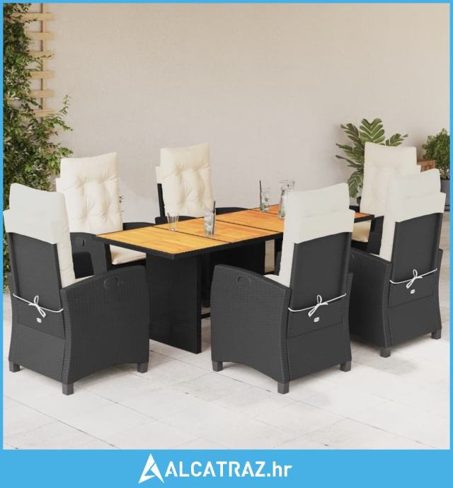 7-dijelni vrtni blagovaonski set s jastucima crni od poliratana - NOVO