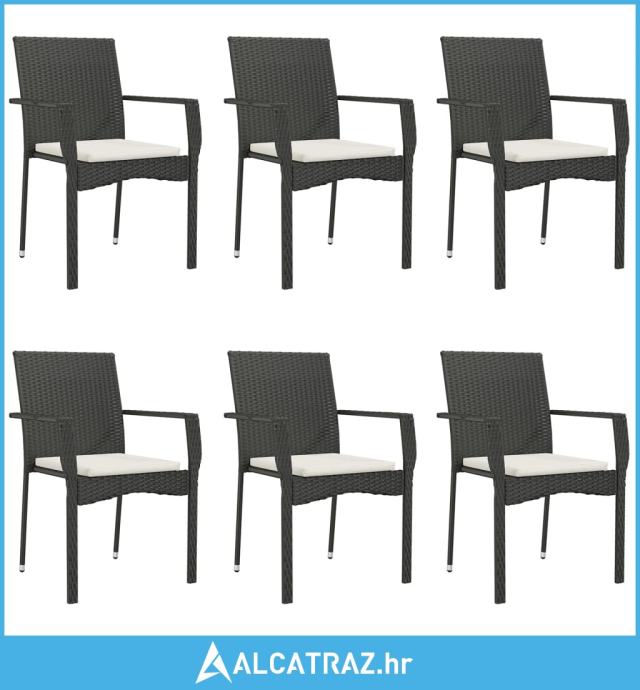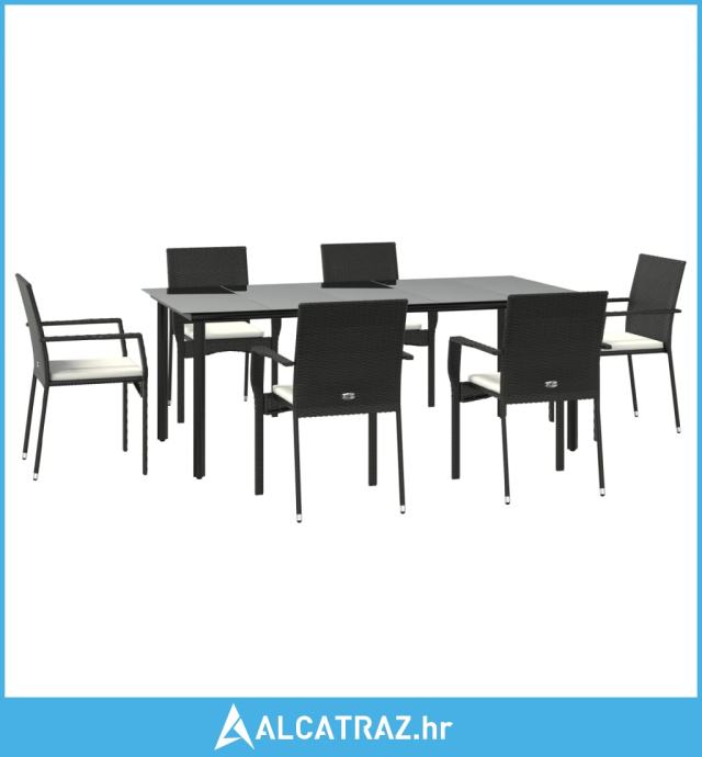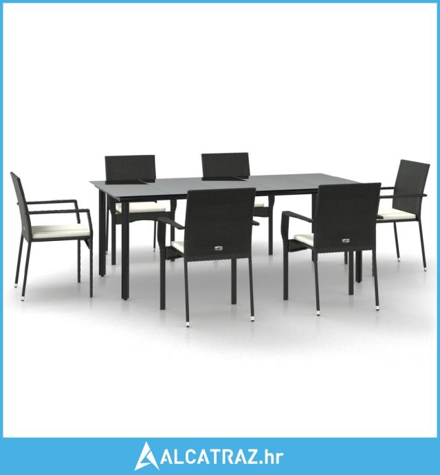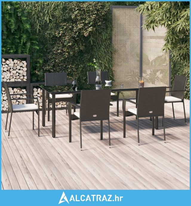 7-dijelni vrtni blagovaonski set s jastucima crni od poliratana - NOVO