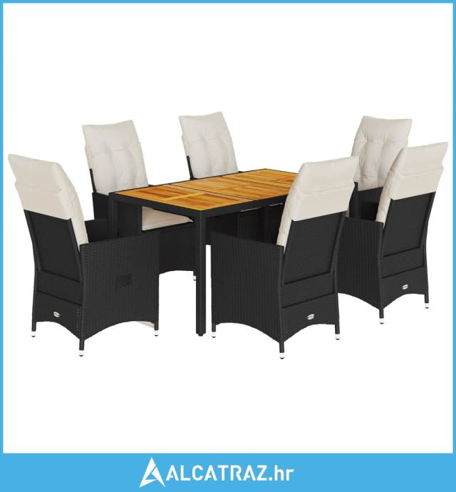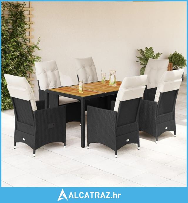 7-dijelni vrtni blagovaonski set s jastucima crni od poliratana - NOVO