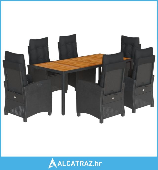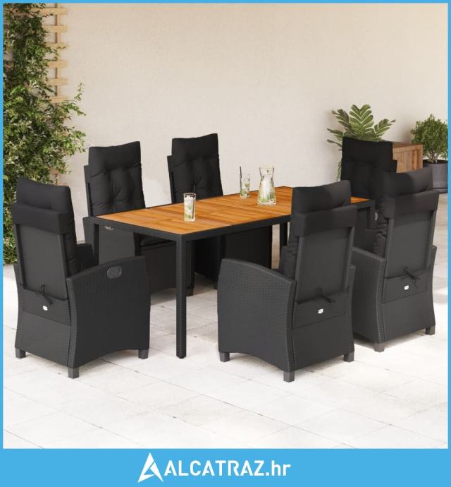 7-dijelni vrtni blagovaonski set s jastucima crni od poliratana - NOVO