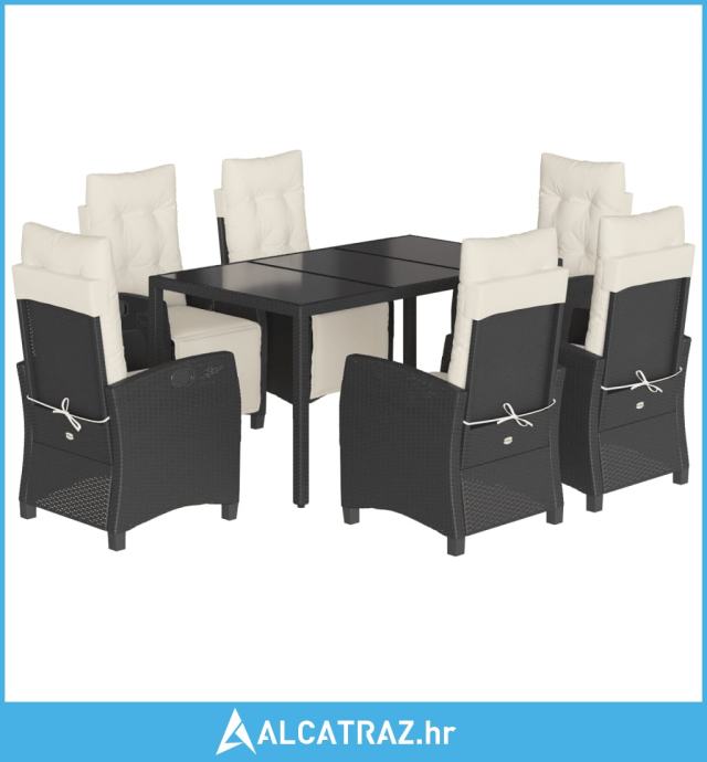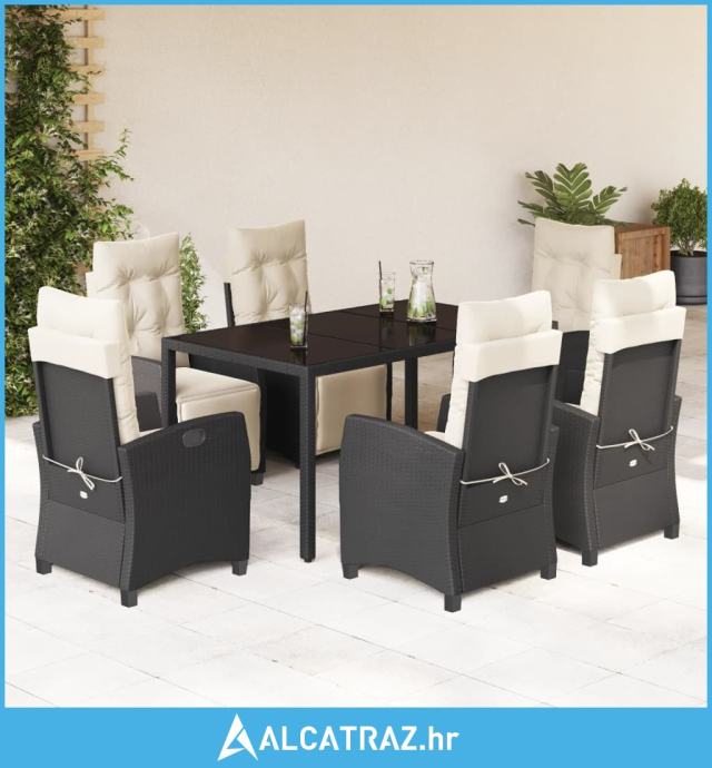 7-dijelni vrtni blagovaonski set s jastucima crni od poliratana - NOVO