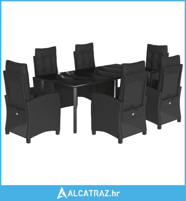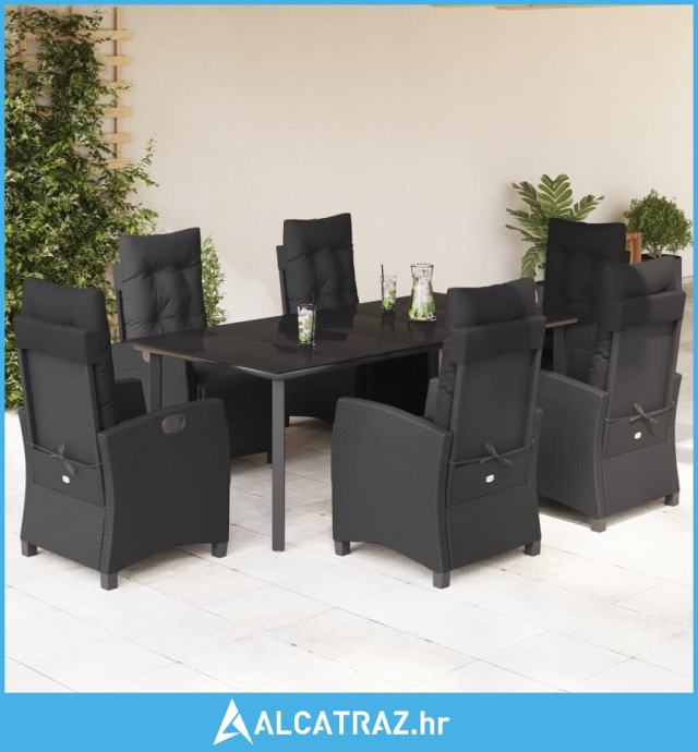 7-dijelni vrtni blagovaonski set s jastucima crni od poliratana - NOVO