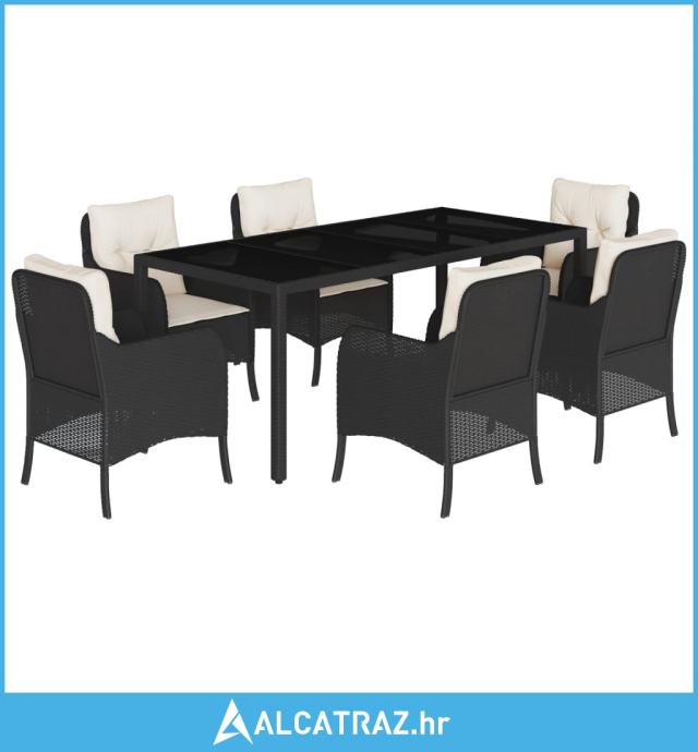 7-dijelni vrtni blagovaonski set s jastucima crni od poliratana - NOVO