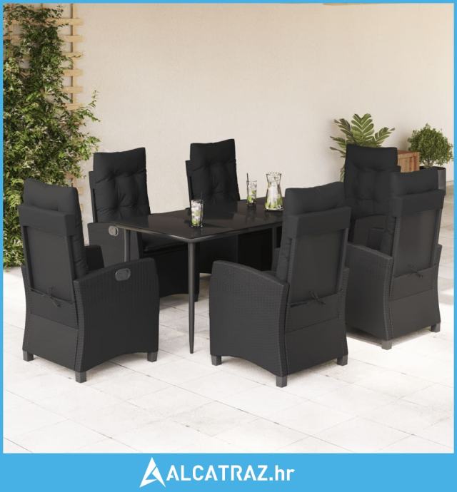 7-dijelni vrtni blagovaonski set s jastucima crni od poliratana - NOVO