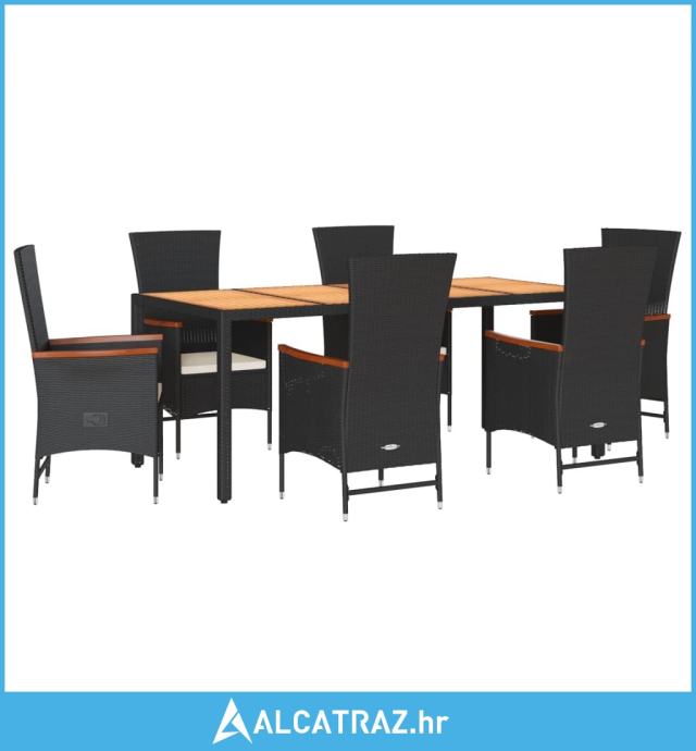 7-dijelni vrtni blagovaonski set s jastucima crni od poliratana - NOVO
