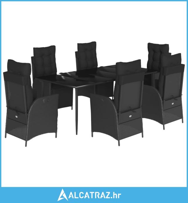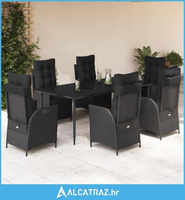 7-dijelni vrtni blagovaonski set s jastucima crni od poliratana - NOVO