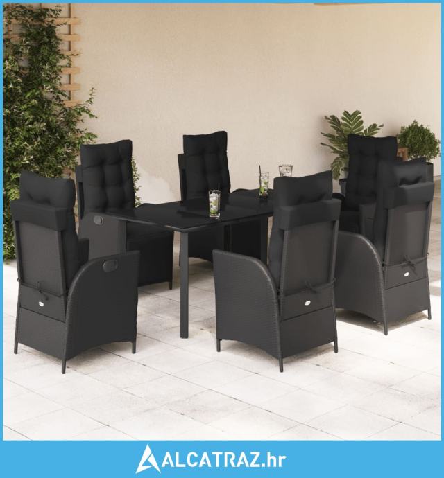7-dijelni vrtni blagovaonski set s jastucima crni od poliratana - NOVO