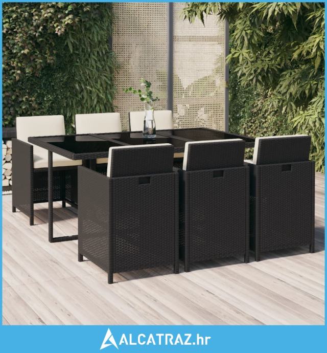 7-dijelni vrtni blagovaonski set s jastucima crni od poliratana - NOVO